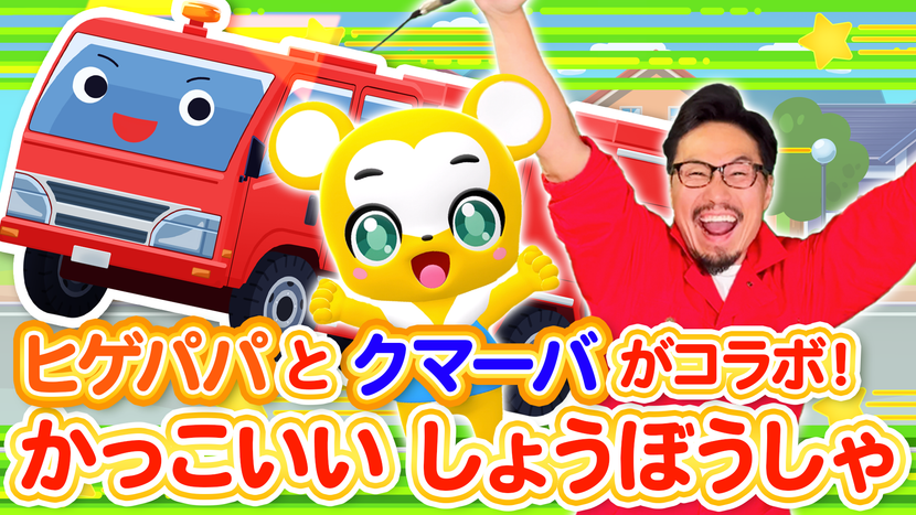 YouTube「ヒゲパパのマジ歌」チャンネルは、童謡や乗り物ソングなど、子どもたちが夢中になる楽曲を数多く発信。親子で楽しめるおうた動画をチャンネル内で提供し支持を得ています。そんな「ヒゲパパのマジ歌」チャンネルと、クマーバチャンネルが初のコラボレーションを実施!今回のコラボでは、クマーバ・ヒゲパパ双方の強みを活かし、子どもたちが「歌って・遊んで・楽しむ」新しい体験を動画を通してお届けいたします!コラボを通じて、より多くのご家庭に笑顔と音楽の楽しさをお届けできることを願っています。 ■「クマーバチャンネル」で公開:「かっこいいしょうぼうしゃ」「ヒゲパパのマジ歌」オリジナルソング「かっこいいしょうぼうしゃ」をクマーバが踊ります♪ヒゲパパのかっこ良く歌い上げる姿も必見!楽しく消防車を学べます! ■「ヒゲパパのマジ歌」で公開:「はみがきパトロール」「ヒゲパパのマジ歌」にクマーバが登場!クマーバチャンネルのオリジナルソング「はみがきパトロール」をヒゲパパと歌います♪みんなで一緒にはみがきパトロ〜〜ル!!